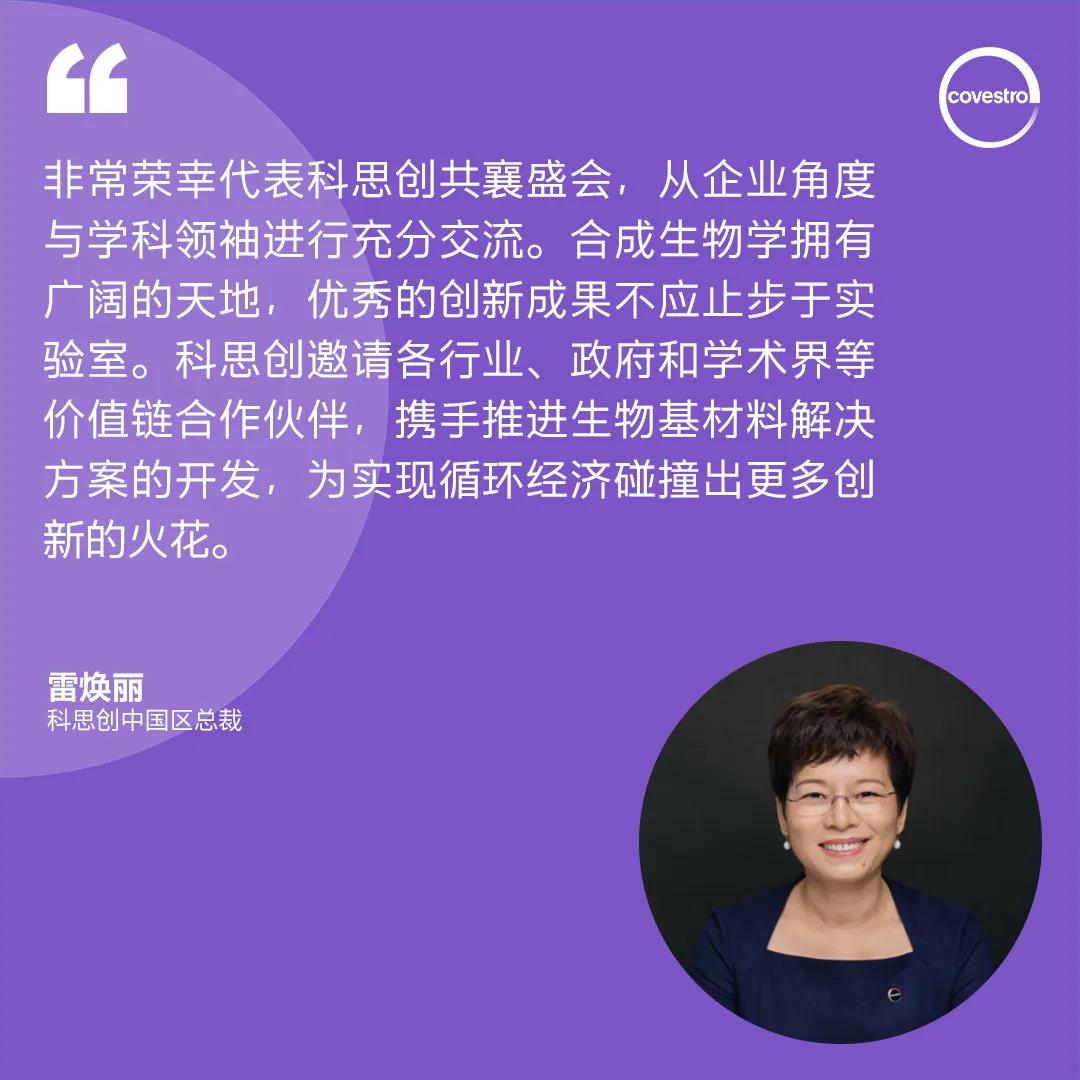 9月7-10日,由科技部和上海市人民政府联合主办的第十七届浦江创新论坛在上海举办,今年主题为“共享创新 共塑未来:构建科技创新开放环境”,并围绕未来材料、合成生物学、绿色低碳等前沿领域组织了多场专题论坛。Covestro科思创全球高级副总裁、中国区总裁雷焕丽受邀出席国际合成生物学创新论坛并发表主旨演讲,与全球顶尖学者和业界领袖深入探讨了该领域的前沿研究成果和实践经验。
