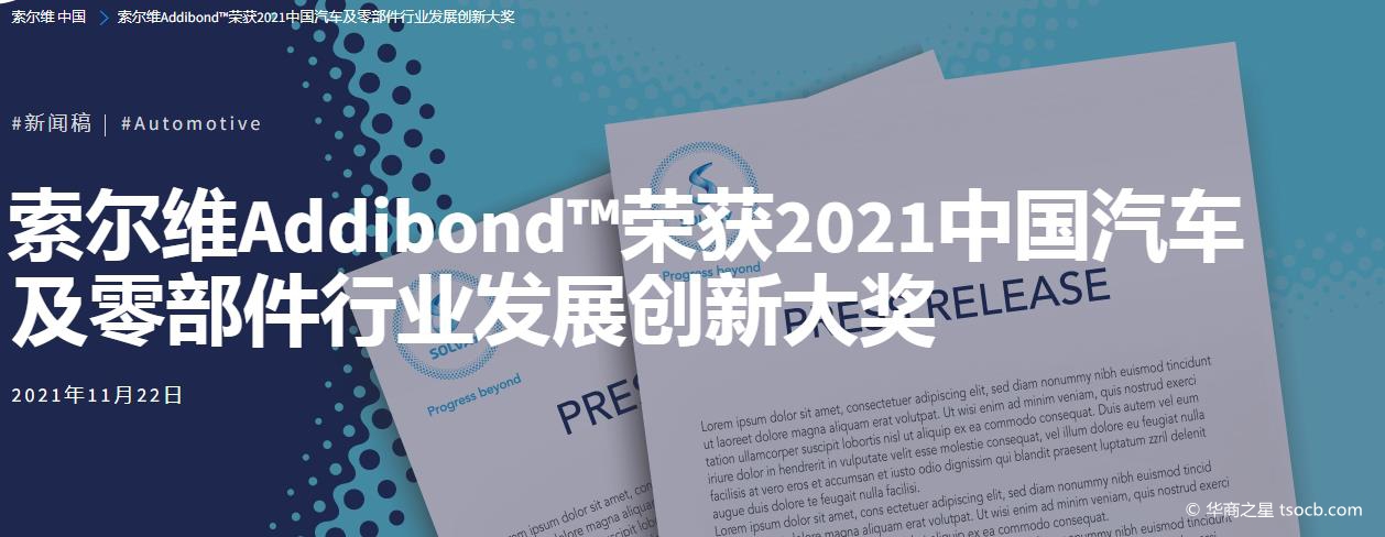 今日,在2021 中国汽车产业发展创新论坛上,索尔维凭借Addibond™ 全铝车身粘接铝板表面处理技术,荣获“2021 中国汽车及零部件行业发展创新大奖”*。在低碳化、轻量化、电气化等趋势下,该技术有助于加强全铝车身结构的粘合效果及其耐久性,减少能源消耗和二氧化碳排放,并提高汽车的回收利用率。