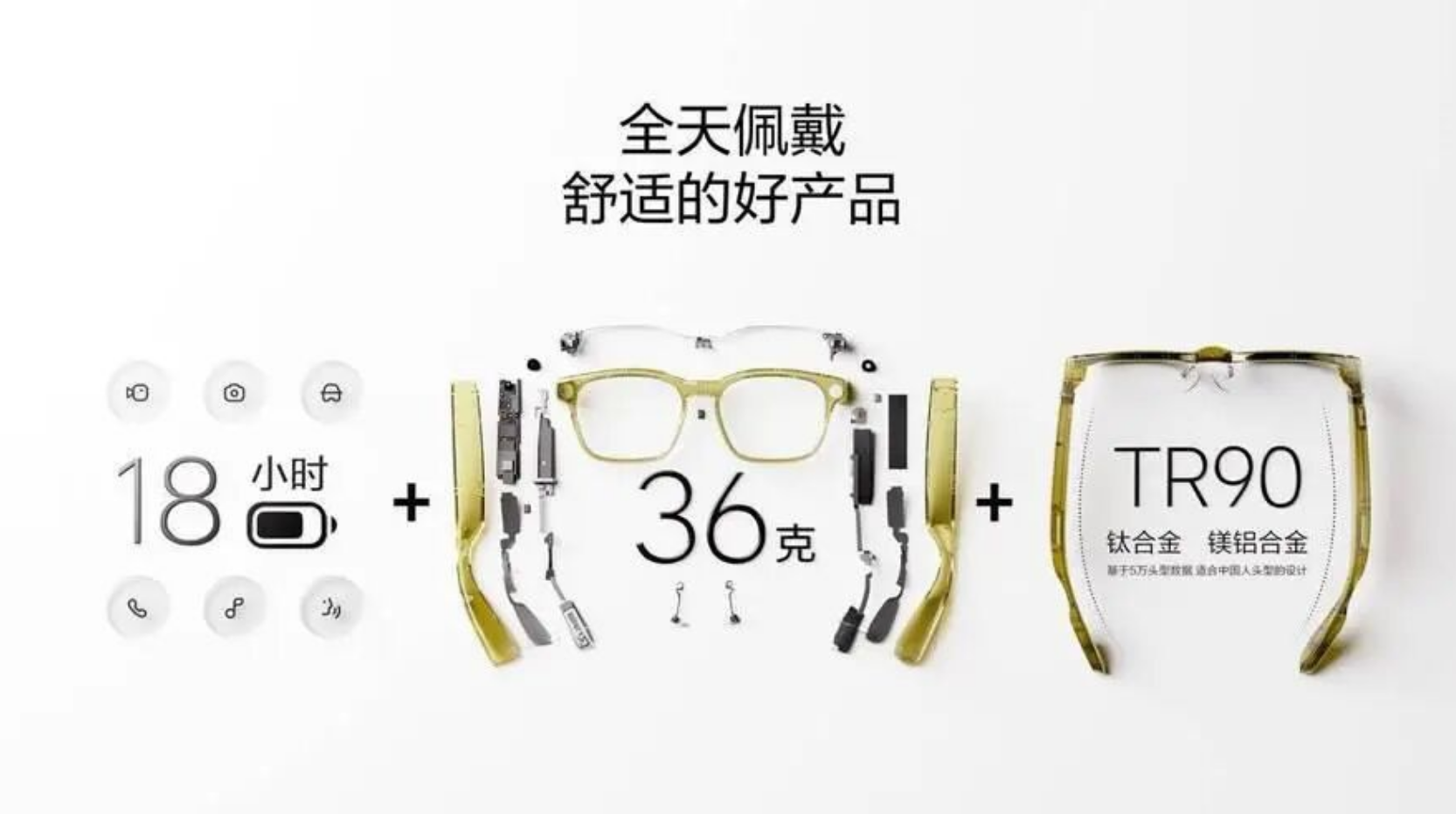 作为镜架核心材质,Grilamid TR90的密度仅1.0g/cm³,让Livis重量低至36克,为AI眼镜的轻量化做出了极大的减重贡献。36克的超轻设计,让用户长时间佩戴也无压痕、无负重感,无论是城市通勤,运动跑步还是户外探险,都能轻松驾驭,真正实现“无感佩戴,自由随行”。