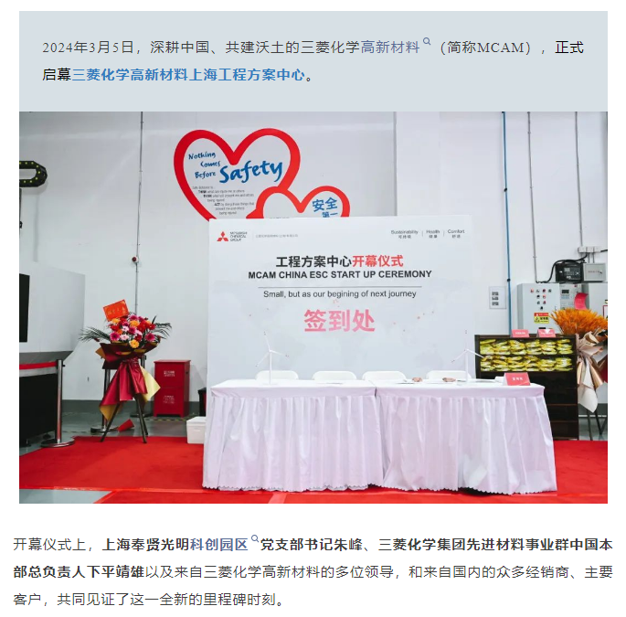 深耕数十载,启序新征程 | 三菱化学MCAM上海工程方案中心正式启幕