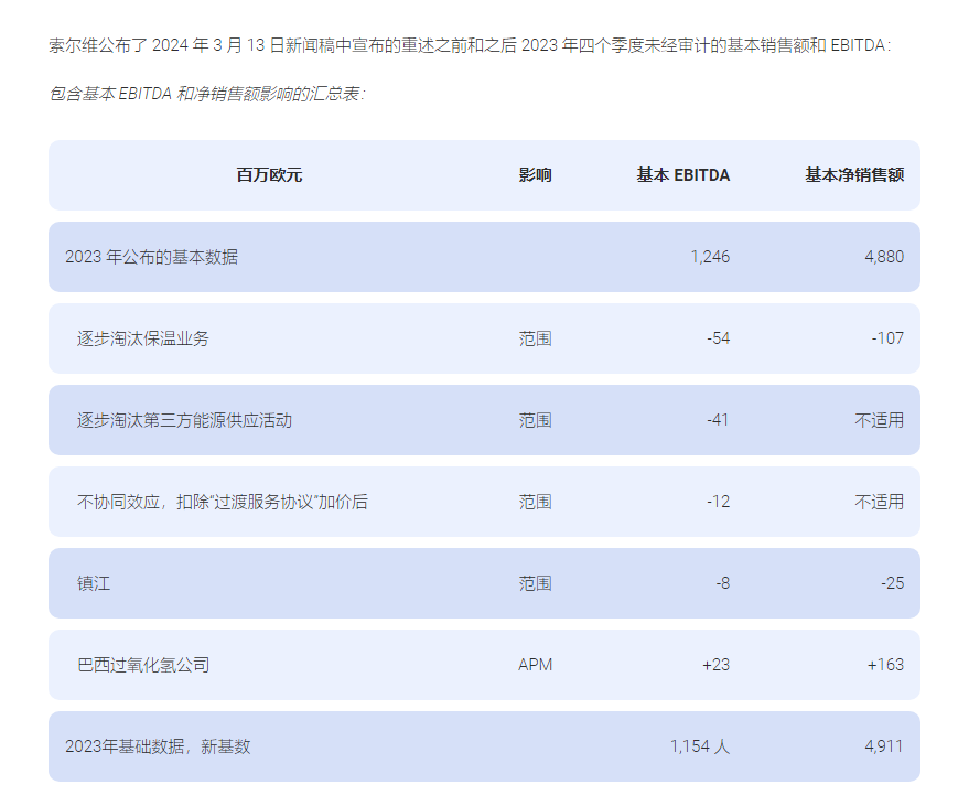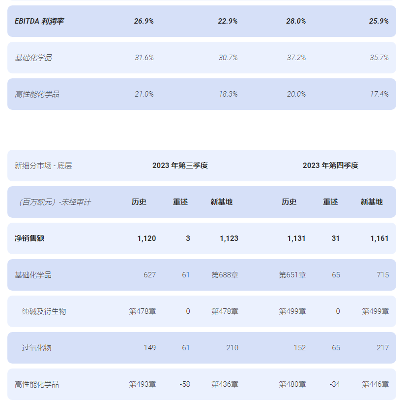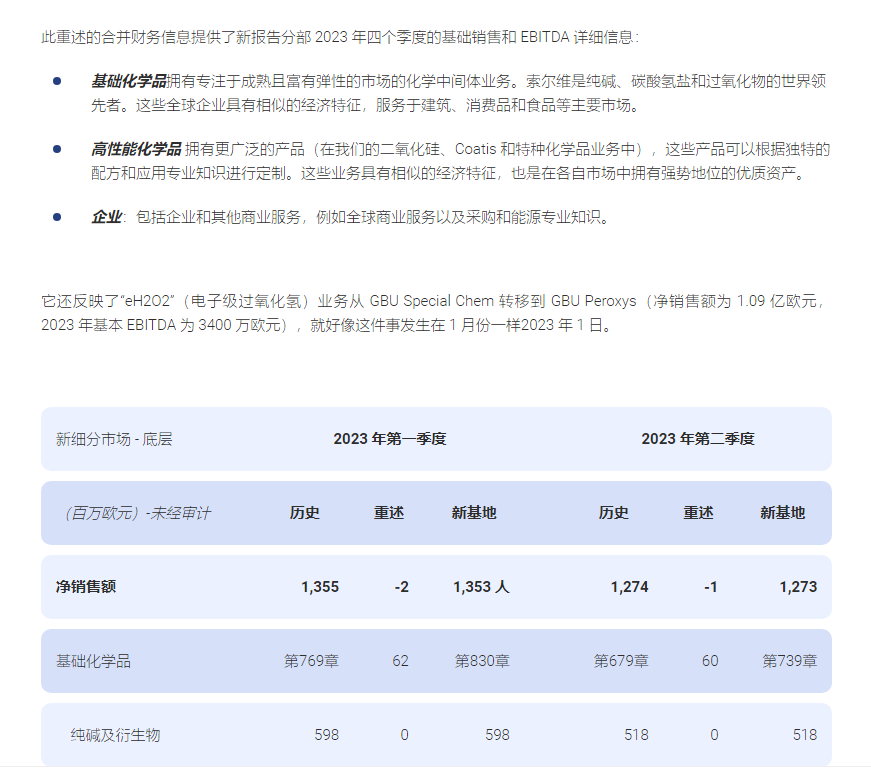 索尔维在重述和新细分报告后发布 2023 年季度信息