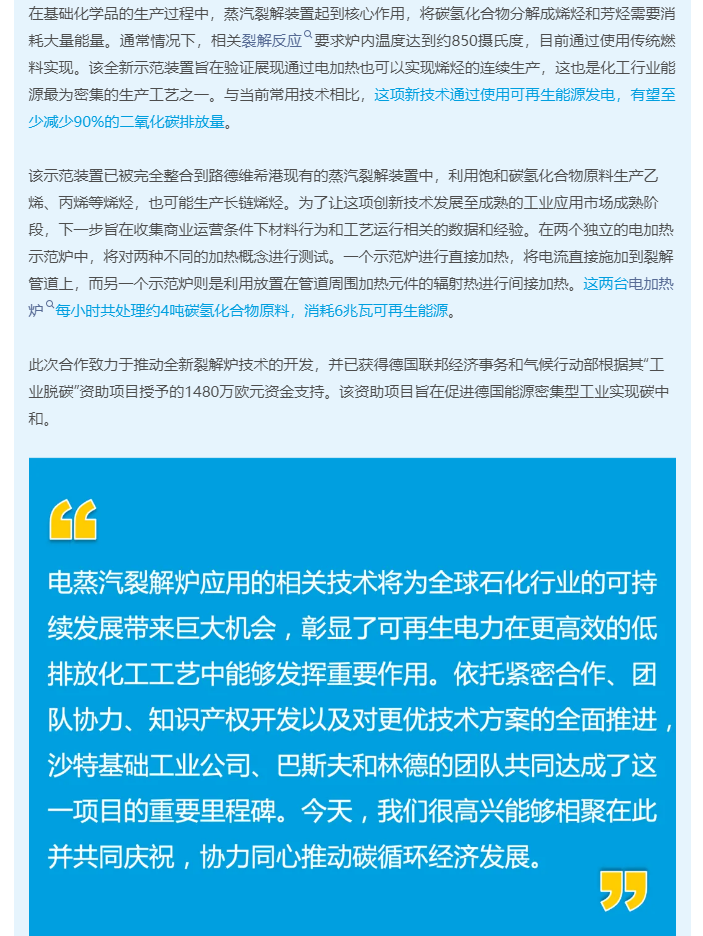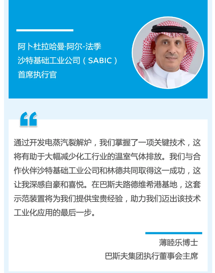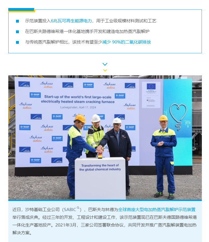 沙特基础工业公司、巴斯夫与林德庆祝全球首座大型电加热蒸汽裂解炉落成投产