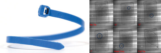 作为世界上最大的全集成PA66生产商,Ascend确保金属添加剂在聚合物基质中的一致分散,即使是小金属颗粒也能清晰可见,并通过标准检测设备进行识别。在将不同大小的电缆扎带碎片添加到谷物薄片中的测试中,使用60 kV和0.3 mA的微聚焦管进行X射线成像,甚至可以可靠地检测到最小的碎片。